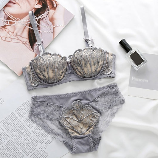 4 Colors Women Lace Embroidery Shell Bra Sets